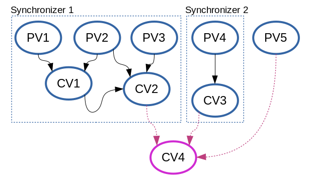 PV5 would not get a synchronizer because it’s output is not used by anything; in fact PV5 would be optimized out after the configuration process is finished.